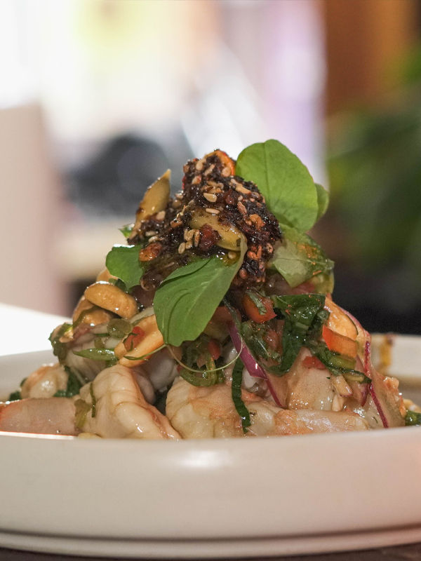 En un recipiente coloca los camarones previamente limpios y cortados (dale play al episodio para tener las instrucciones precisas de este primer paso). Agrega jugo de limón para que el camarón se cueza y los sabores se integren. En otro recipiente mezcla el rabo de cebollas cambray, hierbabuena, menta, cebolla, pimiento morrón, cacahuate, chile habanero, soya, vinagre de arroz y aceite de ajonjolí. Luego de marinar los camarones en el limón, al menos por una hora, integra los demás ingredientes y revuelve todo. Rectifica los sabores y listo, ¡a comer se ha dicho! Recomendamos acompañarlo con tostadas.